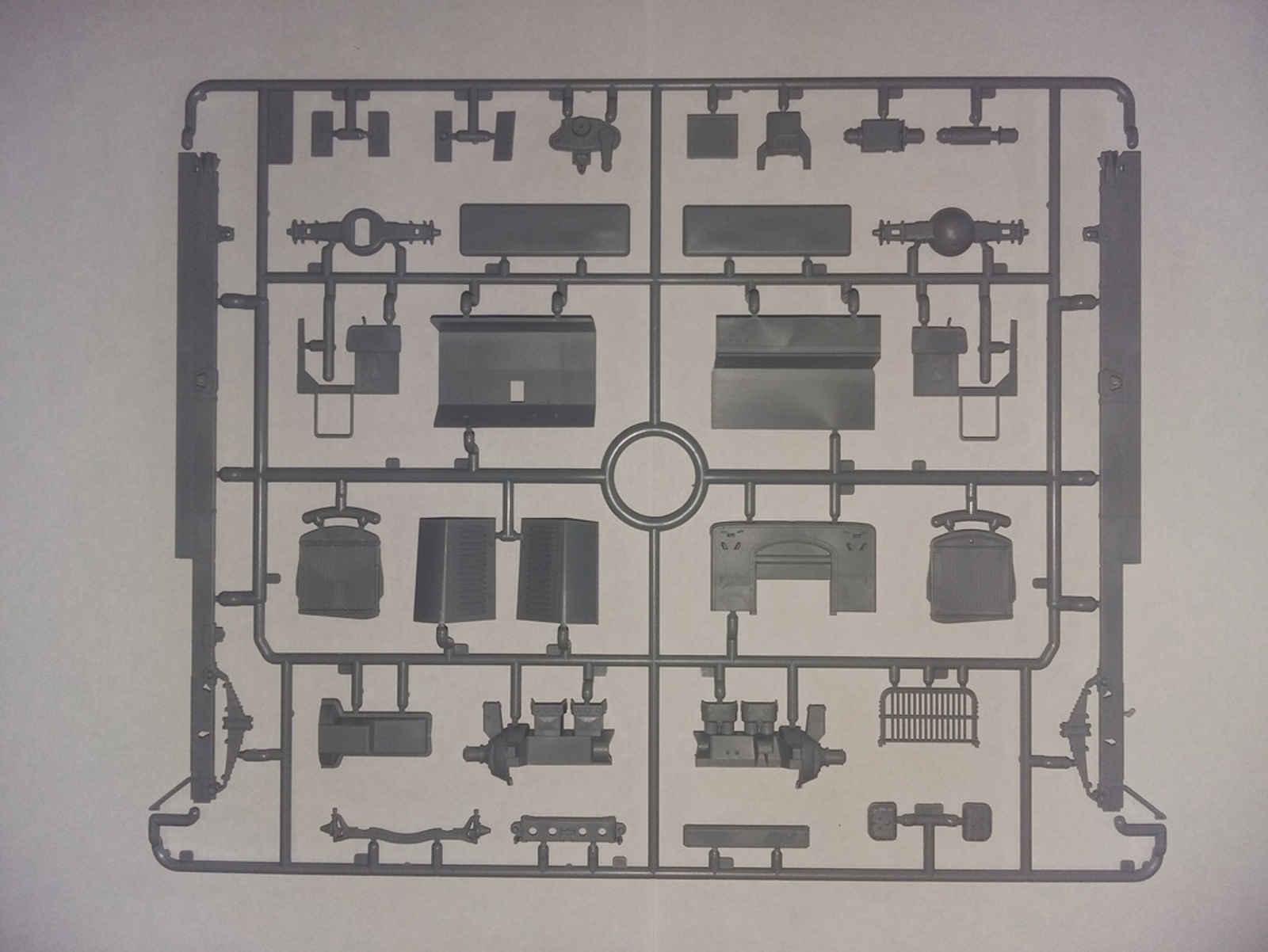 Сборная детализированная ходовая часть, сборный проработанный двигатель, воспроизведены органы управления в кабине, сборный кузов с имитацией мягкого тента.